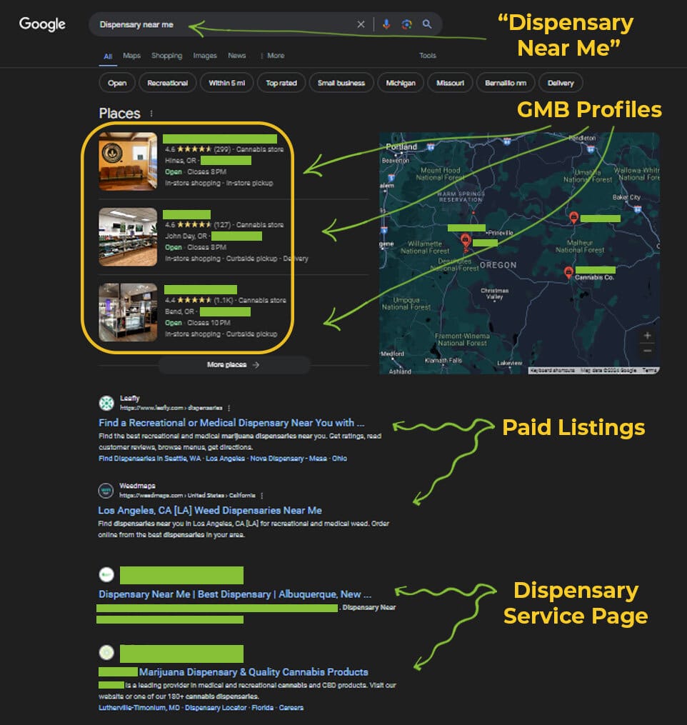 We start by fully optimizing your Google Business Profile (formerly GMB) to show up in high-converting searches like “dispensary near me.” Your listing becomes a magnet for nearby buyers.